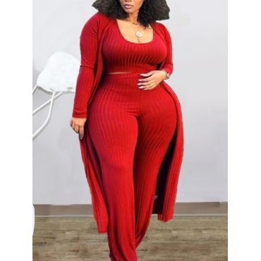Lovely Casual U Neck Skinny Red Plus Size Three-piece Pants Set