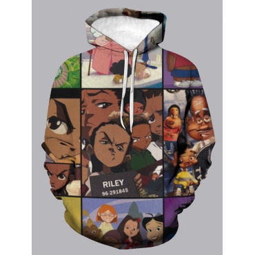 Lovely Stylish Hooded Collar Cartoon Print Multicolor Hoodie