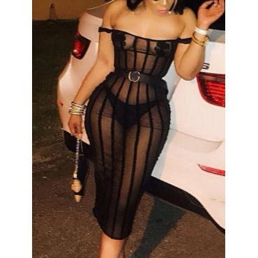 Lovely Sexy Dew Shoulder Patchwork Black Knee Length Dress