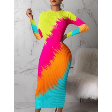 Lovely Stylish O Neck Tie-dye Multicolor Ankle Length Dress
