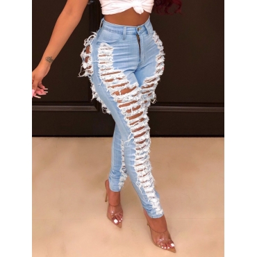 Lovely Stylish High-waisted Broken Holes Baby Blue Jeans