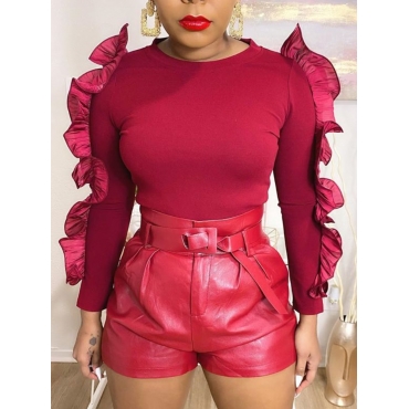 Lovely Stylish O Neck Flounce Design Red Base Layer