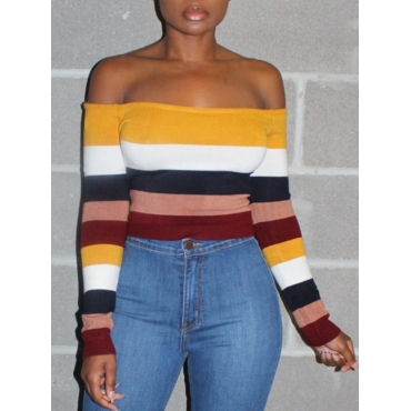 Lovely Casual Off The Shoulder Striped Patchwork Multicolor T-shirt