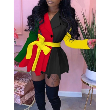 Lovely Stylish Turndown Collar Patchwork Fold Design Black Mini Dress