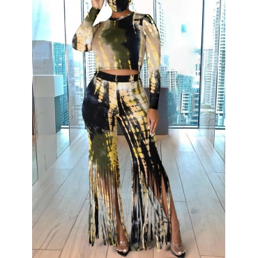 Lovely Street Tie Dye Tassel Design Multicolor Two Piece Pants Set