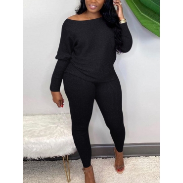 Lovely Casual Boat Neck Long Sleeve Black Two Piece Pants Set