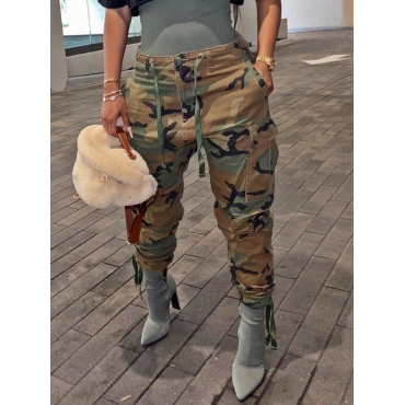 Lovely Casual Side-pocket Loose Camo Print Pants