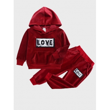 Lovely Sportswear Hooded Collar Letter Print Wine Red Girl Two-piece Pants Set