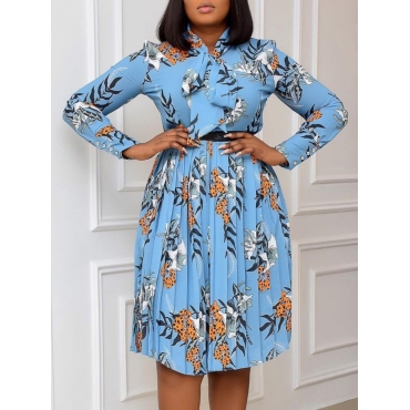 Lovely Trendy Plants Print Skyblue Knee Length Dress