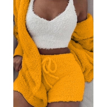 Lovely Spaghetti Strap Drawstring Design Croci Sleepwear(Three-piece)