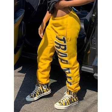 Lovely Street Letter Print Yellow Pants