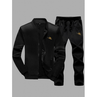 Lovely Casual Mandarin Collar Zipper Design Black Men Two-piece Pants Set