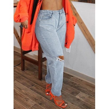 Lovely Casual Hollow-out Baby Blue Plus Size Jeans