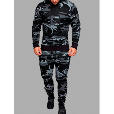 Lovely Trendy Hooded Collar Camo Print Grey Men Two-piece Pants Set