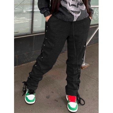 Lovely Casual Patchwork Black Pants