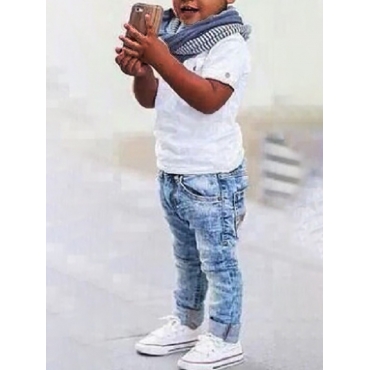 Lovely Trendy Turndown Collar Buttons Design White Boy Two-piece Pants Set