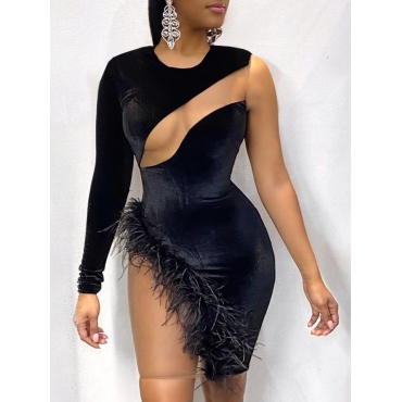 Lovely Sexy One Shoulder Patchwork Black Mini Dress