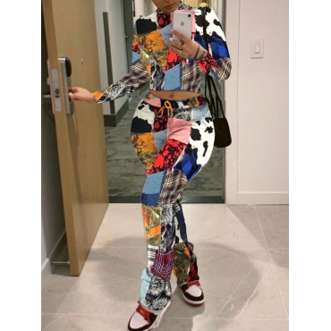 Lovely Street Full Print Patchwork Multicolor Two Piece Pants Set