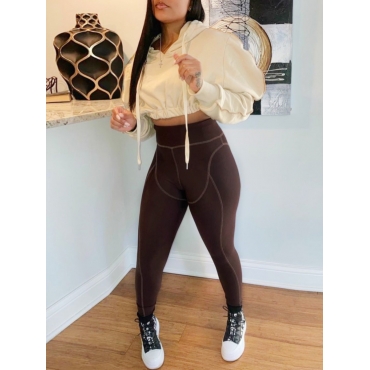 Lovely Sportswear Hooded Collar Dropped Shoulder Brown Two Piece Pants Set