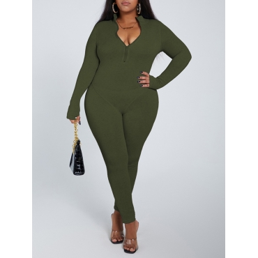 Lovely Casual Conventional Collar Long Sleeve Army Green Plus Size One-piece Jumpsuit