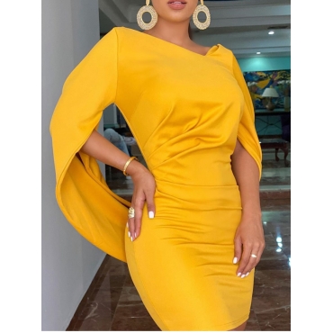 Lovely Chic V Neck Hollow-out Yellow Mini Dress