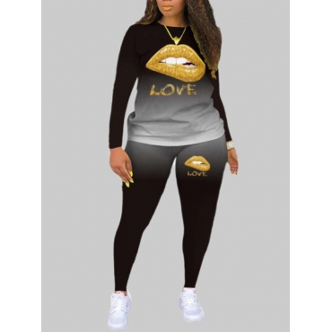 Lovely Casual Lip Print Black Plus Size Two-piece Pants Set