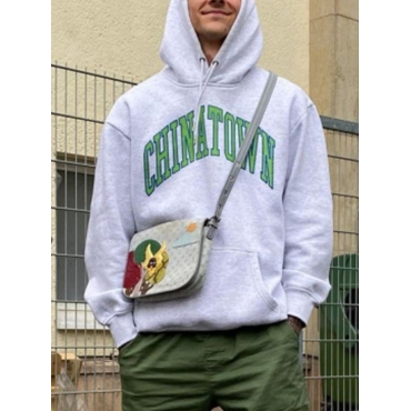 Lovely Street Hooded Collar Letter Print Grey Men Hoodie