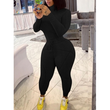 Lovely Stylish Turtleneck Long Sleeve Black Two Piece Pants Set
