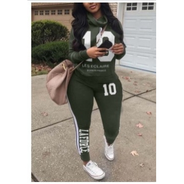 Lovely Sportswear Turtleneck Letter Print Green Plus Size Two-piece Pants Set