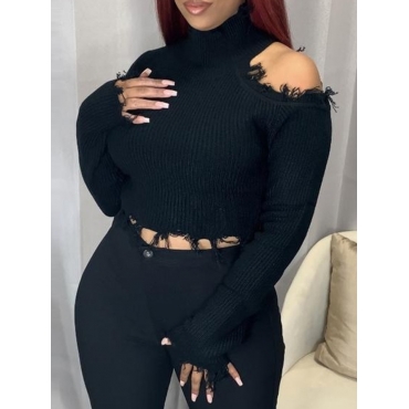 Lovely Stylish Turtleneck Hollow-out Black Sweater