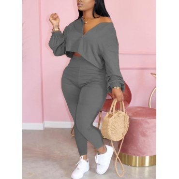 Lovely Casual Zipper Design Grey Plus Size Two-piece Pants Set