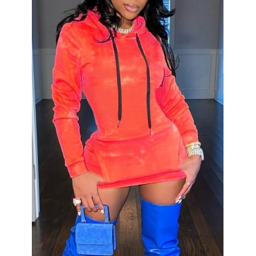 Lovely Casual Hooded Collar Basic Red Mini Dress