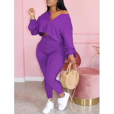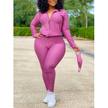 Lovely Casual Zipper Design Purple Plus Size Two-piece Pants Set