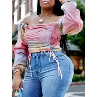 Lovely Stylish Dew Shoulder Tie-dye Multicolor Plus Size Blouse