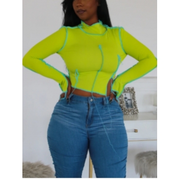 Lovely Street Turtleneck Patchwork Green T-shirt