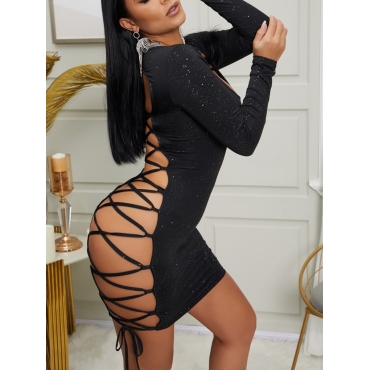 Lovely Sexy Square Collar Bandage Design Black Mini Dress