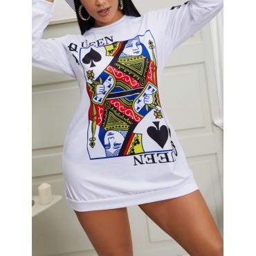 Lovely Street O Neck Print White Mini Dress