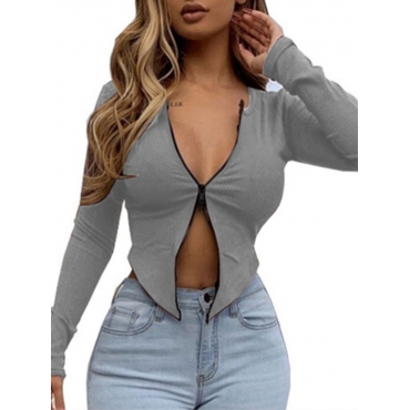 Lovely Street Zipper Design Grrey T-shirt