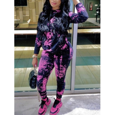 Lovely Trendy Hooded Collar Tie Dye Pink Two Piece Pants Set