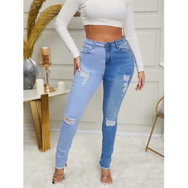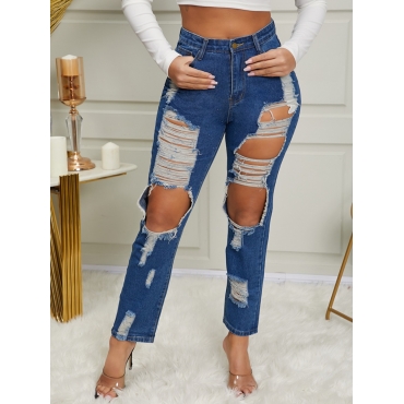 Lovely Trendy Broken Holes Blue Jeans
