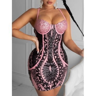 Lovely Sexy Spaghetti Strap Print Pink Mini Dress