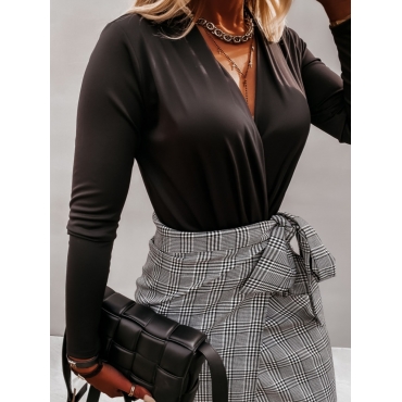 Lovely Stylish Deep V Neck Black Blouse