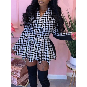 Lovely Stylish Turndown Collar Print Patchwork Black Mini Dress