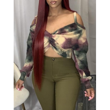 Lovely Trendy Tie-dye Hollow-out Dull Red Blouse
