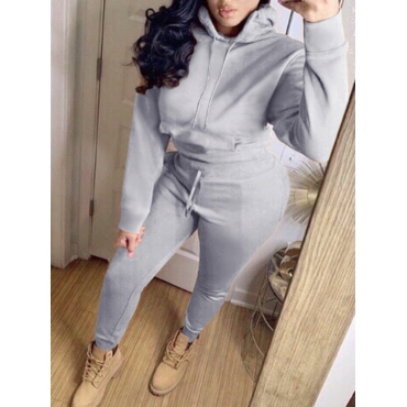 Lovely Casual Hooded Collar Basic Grey Two Piece Pants Set