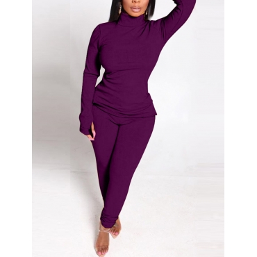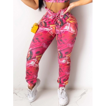 Lovely Leisure Hooded Collar Print Loose Purple Two Piece Pants Set