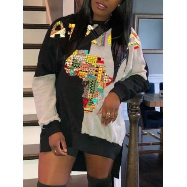Lovely Street O Neck Print Patchwork Black Mini Dress