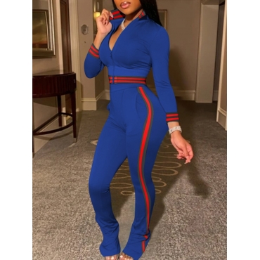 Lovely Sportswear Zipper Design Patchwork Royalblue Two Piece Pants Set
