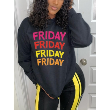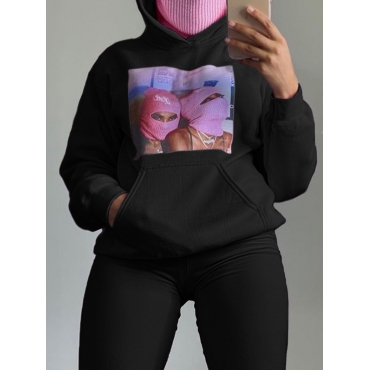 Lovely Leisure Hooded Collar Print Black Hoodie