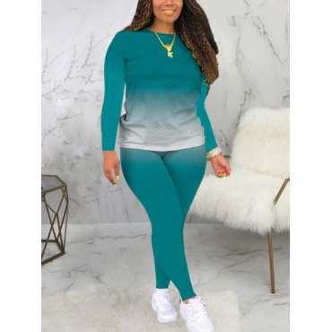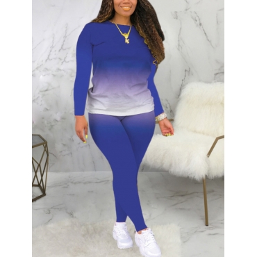 Lovely Casual O Neck Gradient Print Blue Two Piece Pants Set